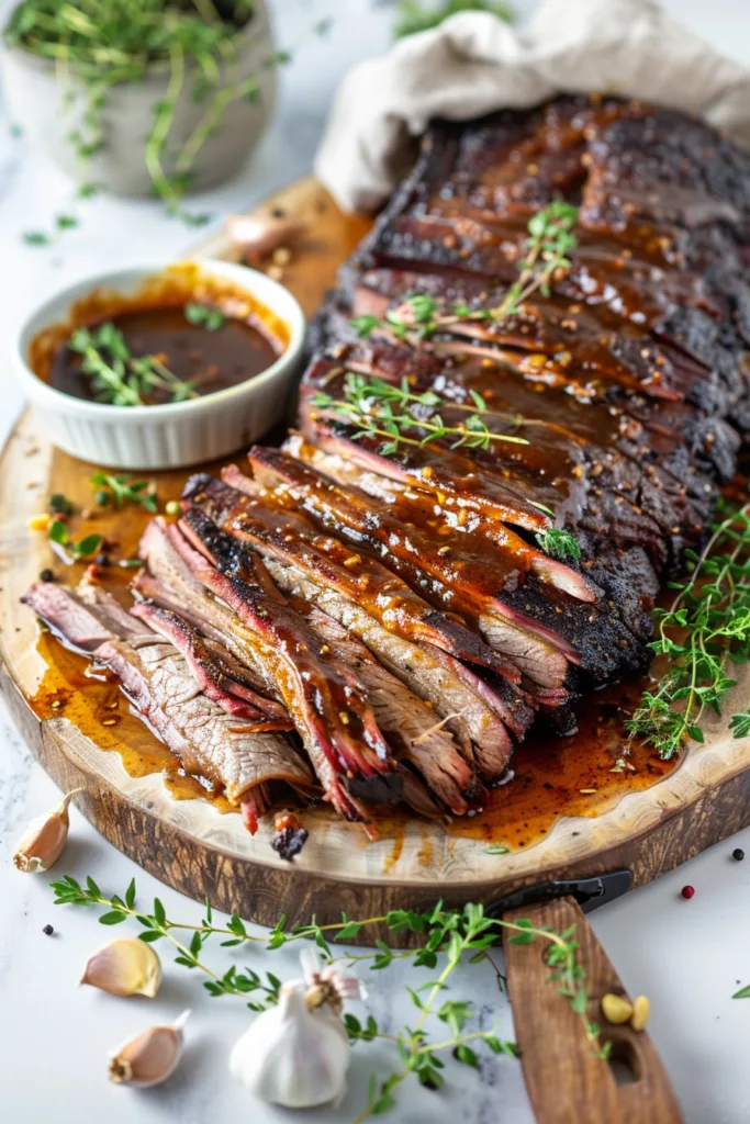 This brisket shines as the main event at any Memorial Day cookout. Serve it with classic sides like coleslaw, baked beans, cornbread, and potato salad. Pile slices onto brioche buns for a crowd-pleasing sandwich option. The finishing sauce doubles beautifully as a dipping sauce on the side.