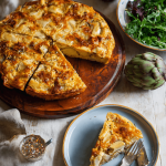 Looking for a show-stopping brunch centerpiece or a quick weeknight dinner solution? This artichoke and crisp frittata combines tender artichoke hearts with the unexpected crunch of kettle chips, creating a dish that’s both sophisticated and comforting. The golden, fluffy eggs envelop crispy artichokes and garlicky goodness, while a fresh rocket salad adds the perfect peppery finish. Ready in just 25 minutes, this versatile recipe works beautifully for breakfast, lunch, or dinner.