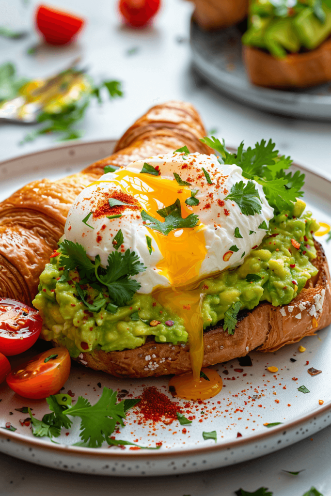 Avocado toast has taken the culinary world by storm, but when you swap regular bread for buttery croissants, you elevate this simple dish to extraordinary heights. The contrast between the crispy, layered pastry and the smooth avocado creates an unforgettable texture experience. Plus, with protein-packed poached eggs and heart-healthy fats, this recipe delivers sustained energy to power through your morning.