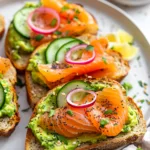 Creamy mashed avocado layered with smoked salmon, crisp cucumber, quick-pickled red onions, and everything bagel seasoning on toasted bread. Ready in 15 minutes and perfect for brunch.