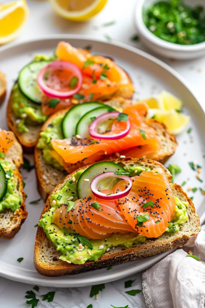 For a heartier mom breakfast, top each toast with a soft poached egg. The runny yolk mingles beautifully with the avocado and smoked salmon for an indulgent Eggs Benedict-inspired twist.