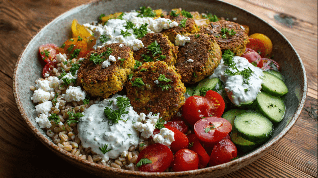 The Mediterranean diet isn’t just a trend it’s a time-tested way of eating that emphasizes whole grains, fresh vegetables, legumes, healthy fats, and moderate amounts of fish and poultry. This Baked Falafel Bowl embodies those principles perfectly, making it an ideal choice for anyone following Mediterranean diet recipes or just looking to eat healthier without sacrificing flavor.