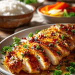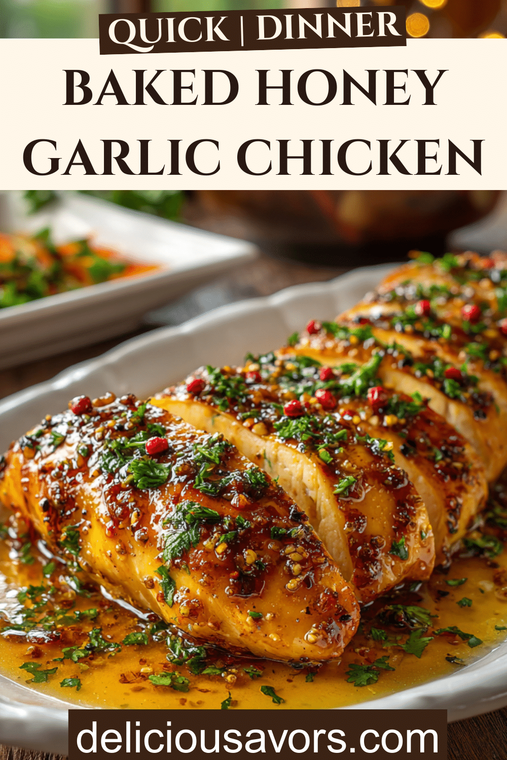 Tender chicken baked in a sweet and savory honey garlic sauce, perfect for family dinners.