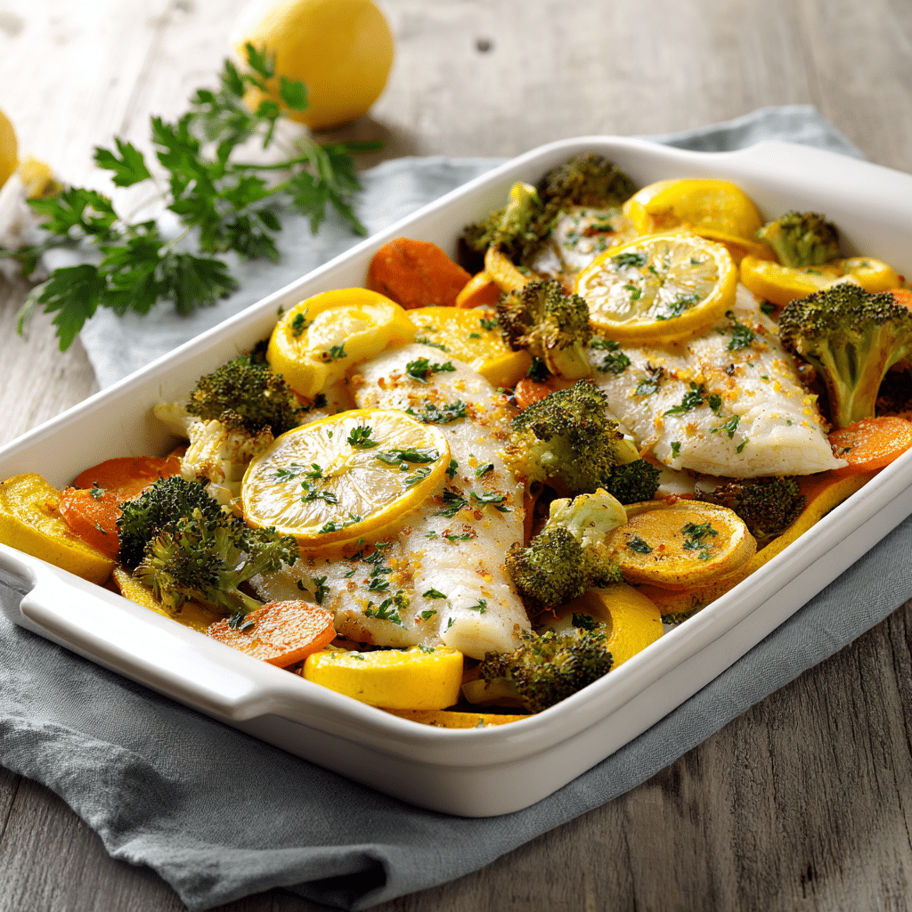 This easy baked tilapia with vegetables is a healthy, flavorful sheet pan dinner that comes together in just 30 minutes. Tender tilapia fillets are seasoned with a zesty garlic-lemon marinade and baked alongside colorful vegetables for a complete, nutritious meal the whole family will love.