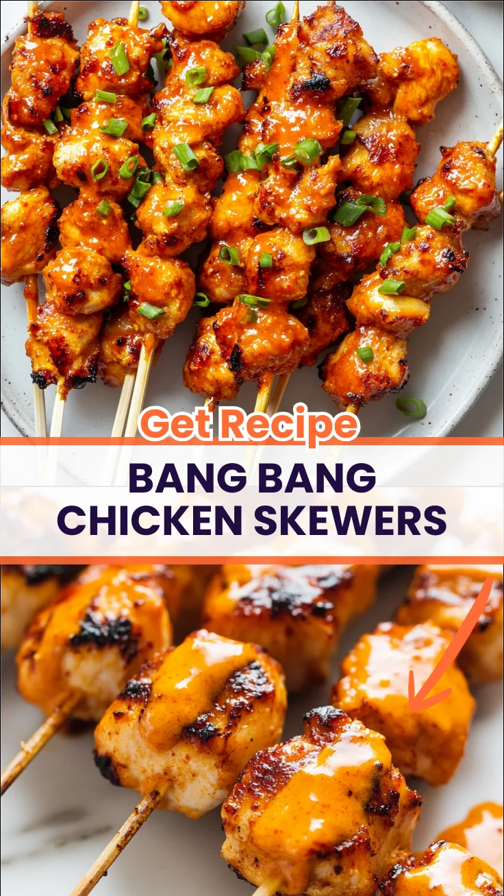 - Finish and serve. Transfer the cooked skewers to a serving plate. Drizzle or brush with the reserved bang bang sauce and serve immediately.
