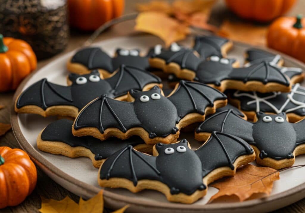 Sugar cookies have a sturdy yet tender texture that holds detailed shapes well, making them excellent for themed cutouts like bats.