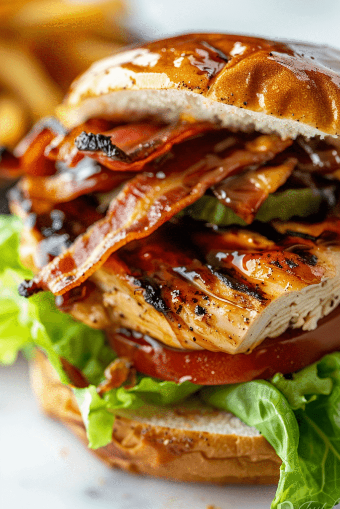 The secret to these incredible burgers is a simple homemade sauce that doubles as a marinade. It is sticky, tangy, and packed with depth, coating every inch of the chicken breast before it hits the grill. Once charred to perfection and nestled inside a toasted bun with crispy bacon, fresh lettuce, and sliced tomatoes, the result is a burger worth celebrating.