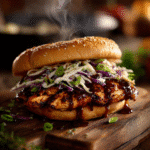 Juicy BBQ chicken thighs topped with creamy ranch coleslaw on soft buns. A quick 15-minute family dinner that’s budget-friendly and kid-approved!