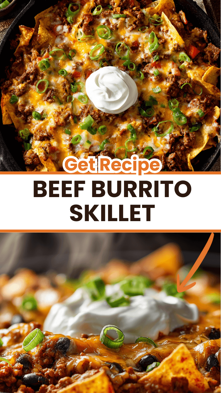 A quick and delicious one-pan meal featuring seasoned ground beef, black beans, melted cheese, and crispy tortilla strips. Perfect for busy weeknights, this Beef Burrito Skillet delivers all the flavors of your favorite burrito in just 30 minutes!