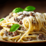 This isn’t your traditional Italian carbonara – it’s a delicious American twist that combines the comfort of creamy pasta with the heartiness of seasoned ground beef. In just 20 minutes, you’ll have a restaurant-quality dish that rivals anything you’d pay $20 for at a fancy Italian bistro. The best part? You probably have most of these ingredients sitting in your pantry right now.