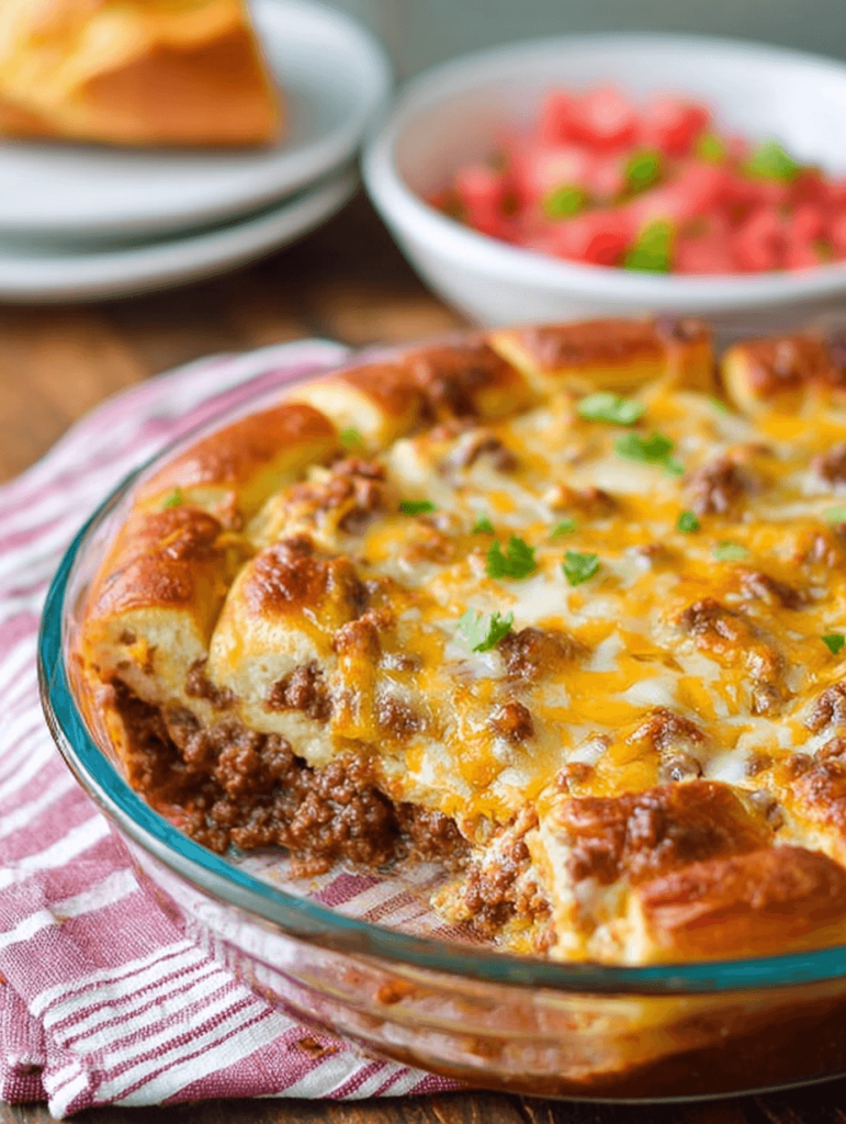 This recipe is perfect for busy weeknights when you need something fast, or when unexpected guests arrive and you want to serve something delicious without spending hours in the kitchen. The flaky, buttery crescent roll crust pairs beautifully with the savory, seasoned beef filling and melted cheese topping, creating a dish that feels indulgent but couldn’t be easier to prepare.