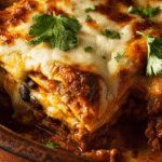 The secret to this casserole’s success lies in its layering technique and homemade sauce. By coating each tortilla in sauce before layering, you ensure every bite is flavorful and moist. The combination of cumin, chili powder, and tomato sauce creates a rich, complex flavor profile that rivals any restaurant version. Using two types of onions one in the sauce and one in the filling adds depth without overwhelming the dish. The black beans provide protein and fiber, making this more substantial than a standard beef enchilada. Most importantly, the cheese-to-filling ratio is perfectly balanced, giving you that coveted cheese pull without being overly heavy.