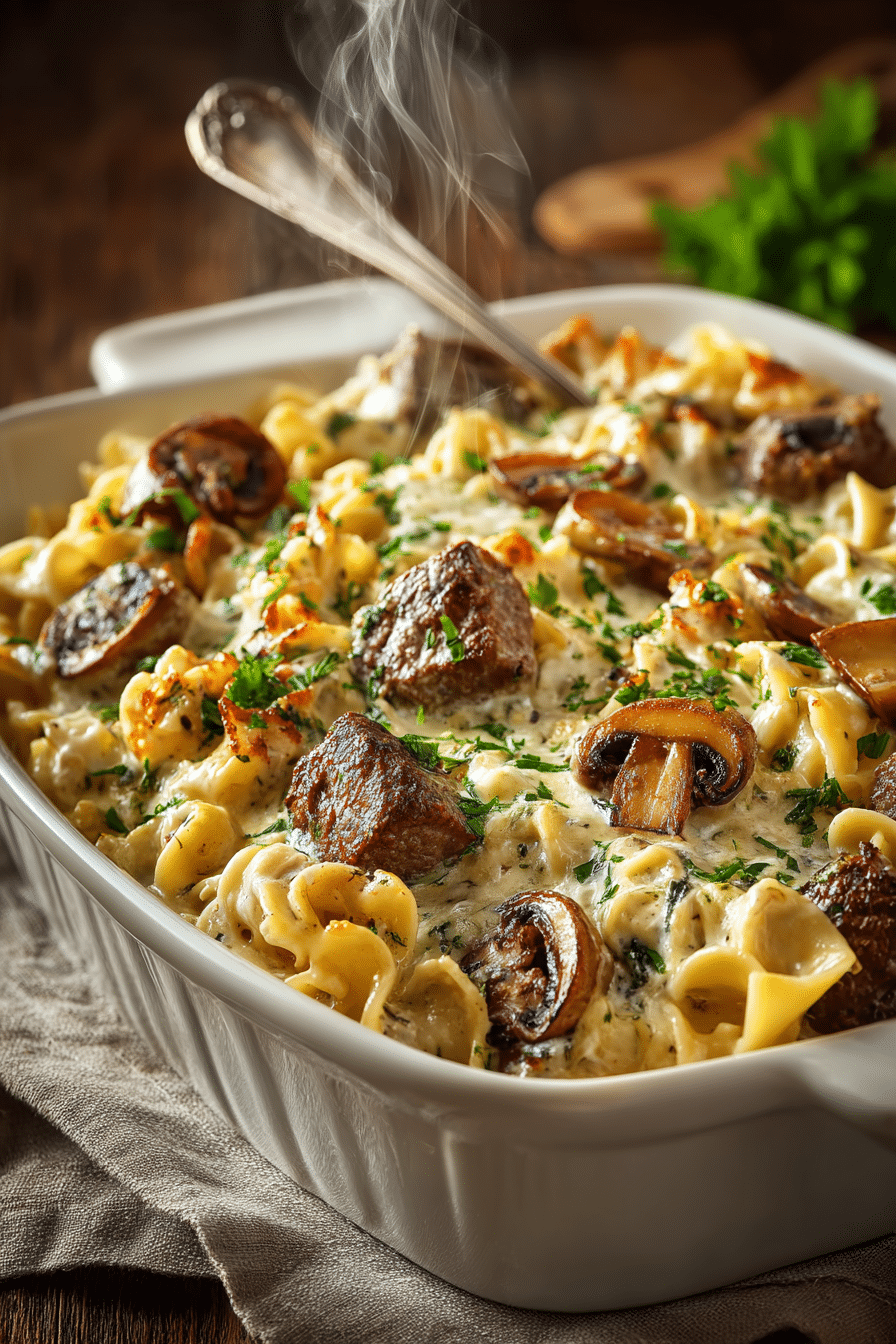 This Beef Stroganoff Casserole transforms tender beef chuck, savory mushrooms, and egg noodles into an easy one-dish comfort meal. Perfect for busy weeknights, this recipe delivers rich, creamy flavors with minimal effort.