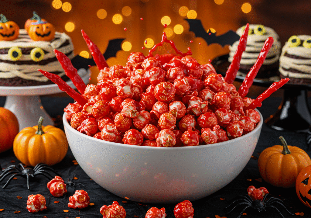 - Bloody Popcorn Balls – Shape into sticky popcorn balls for grab-and-go snacks.