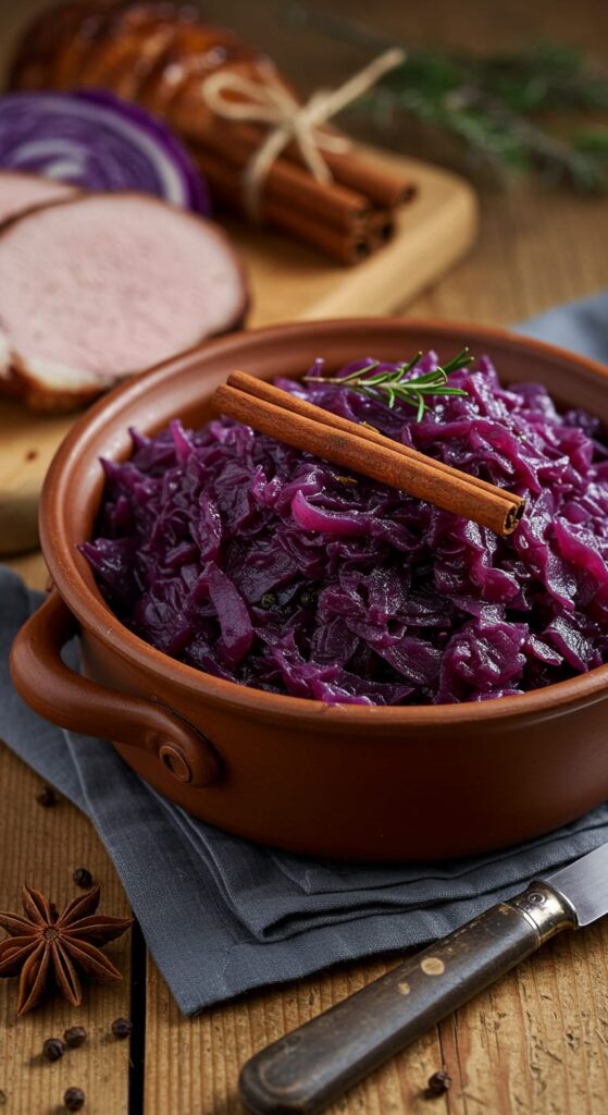 Braised red cabbage is more than just a vegetable dish it’s a comforting companion that enhances an entire meal. Slow cooking transforms its bold crunch into buttery tenderness while the red cabbage keeps its deep jewel-like color thanks to vinegar. With red onions for rich depth, soft brown sugar for a touch of caramel sweetness, and spices like cinnamon for warmth, this recipe is both simple and memorable.