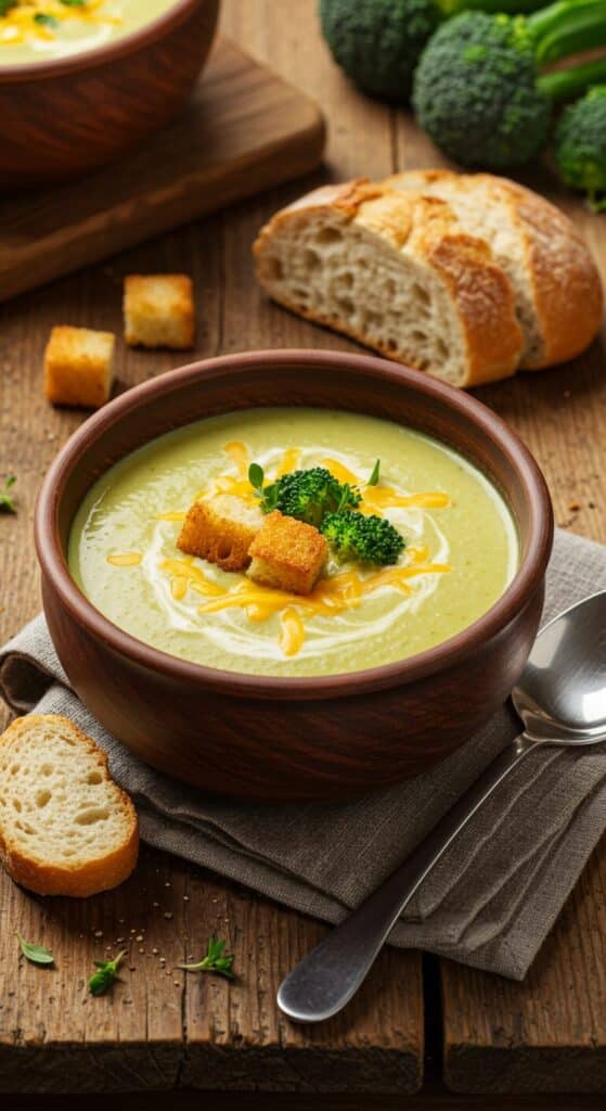 A creamy, comforting broccoli and cheese soup made with fresh vegetables, sharp cheddar, and a velvety broth.