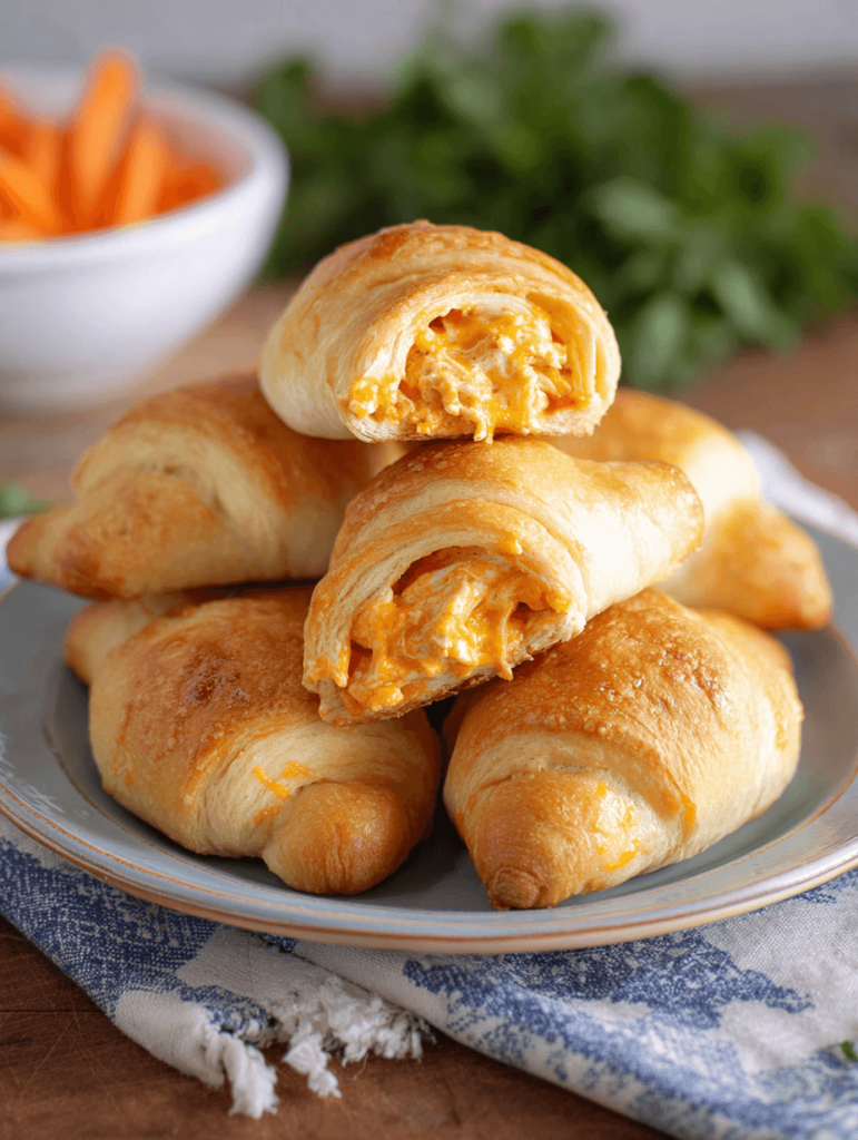 Serve these Buffalo Chicken Crescent Rolls hot from the oven with extra ranch dressing or blue cheese dressing for dipping. They pair wonderfully with celery and carrot sticks for a complete buffalo chicken experience. For game day spreads, arrange them on a platter with other finger foods like wings and sliders.