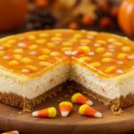 Candy Corn Cheesecake blends the creamy texture of cheesecake with the nostalgic sweetness of candy corn, set on a buttery graham cracker crust and topped with a candy corn glaze, perfect for festive fall occasions.