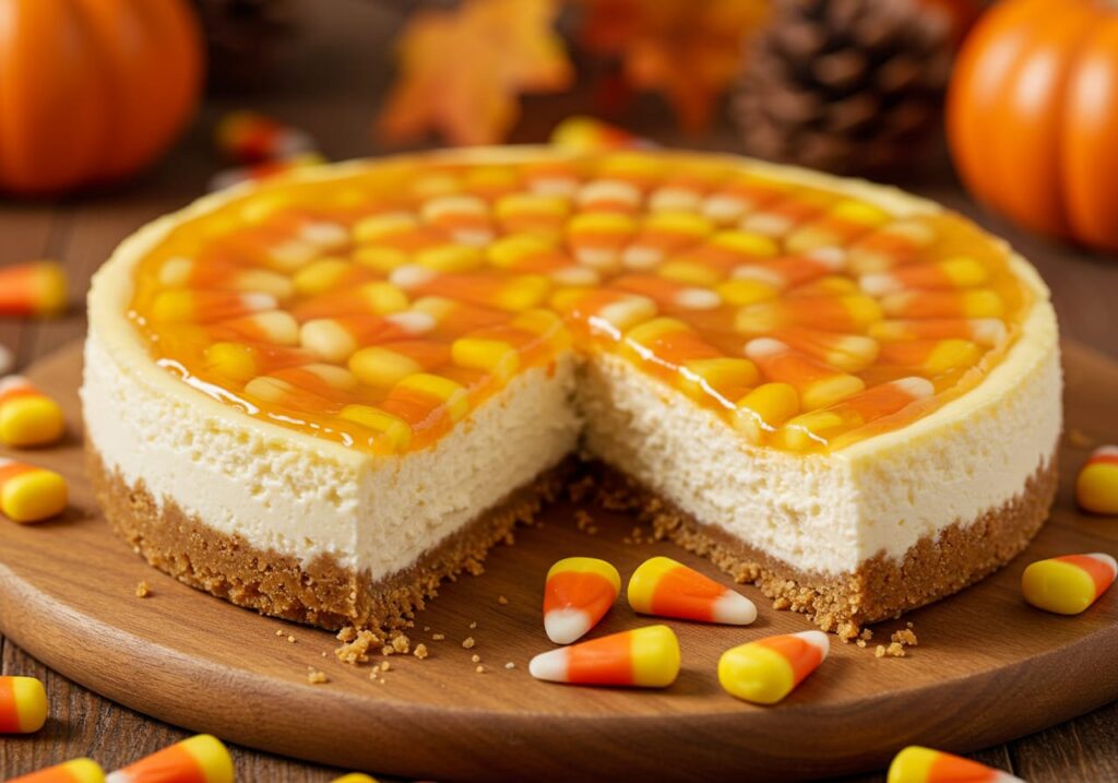 - Cut into slices and serve to enjoy a perfect balance of creamy cheesecake and sweet candy corn flavor.