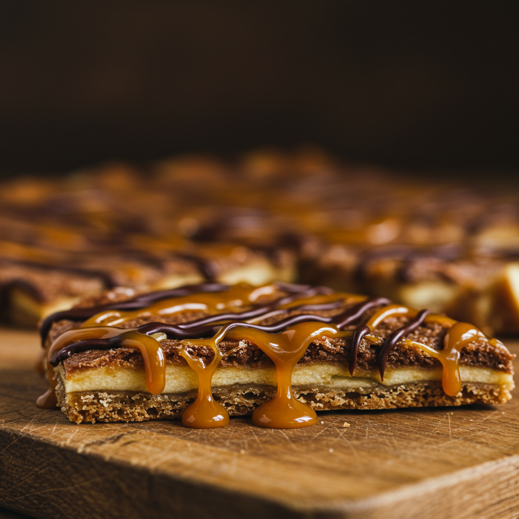 - Layer caramel: Slowly drizzle the melted caramel over the pretzel layer.