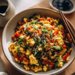 Need quick dinner ideas that the whole family loves? This Cauliflower Rice Stir Fry is your go-to for easy weeknight dinners. Packed with frozen riced cauliflower, fresh ginger, garlic, and scrambled eggs, it’s a healthy dinner idea ready in just 10 minutes using a frying pan and basic kitchen utensils.