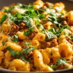 Transform simple ingredients into restaurant-quality comfort food with this Cheesy Beef Queso Mac. Ready in just 30 minutes, this recipe combines lean ground beef, smoky chipotle seasoning, creamy queso dip, and protein-rich chickpea pasta for a healthier twist on classic mac and cheese. Perfect for busy weeknights or lazy dinners!