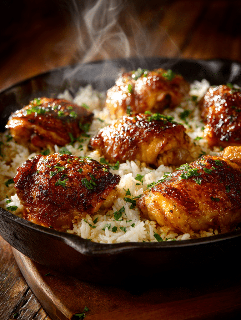 A budget-friendly one-pot meal featuring tender, herb-seasoned chicken thighs and fluffy rice cooked together for maximum flavor. Perfect for easy weeknight dinners that feed the whole family for under $6.