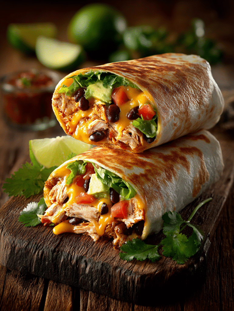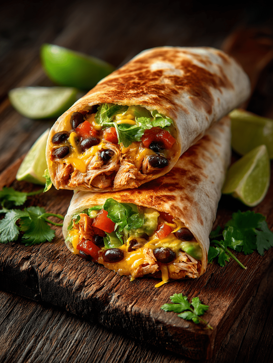 Delicious Chicken & Black Bean Burritos packed with protein, fresh vegetables, and bold flavors. Ready in just 15 minutes, these easy burritos are perfect for busy weeknights, meal prep, or a quick family dinner!