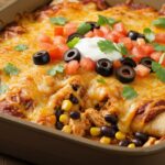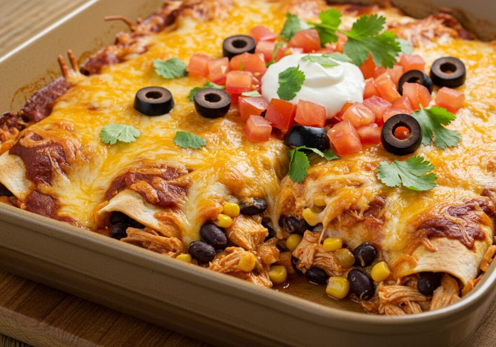 A comforting and flavorful Cheesy Chicken Enchilada Casserole that layers tender chicken, black beans, corn, tortillas, and melted Mexican cheese with enchilada sauce. Perfect for easy family dinners.