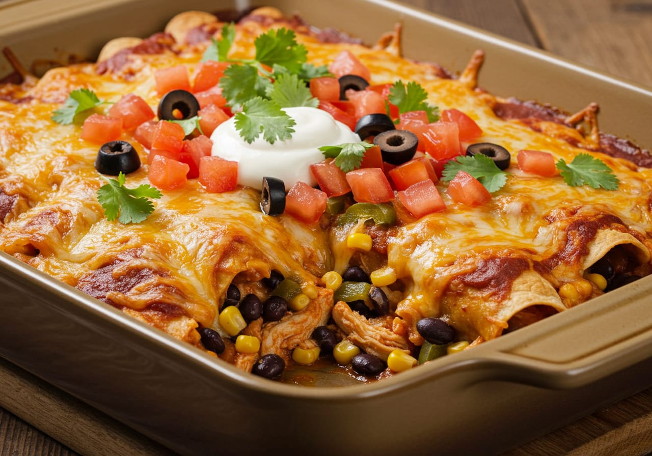 A comforting and flavorful Cheesy Chicken Enchilada Casserole that layers tender chicken, black beans, corn, tortillas, and melted Mexican cheese with enchilada sauce. Perfect for easy family dinners.