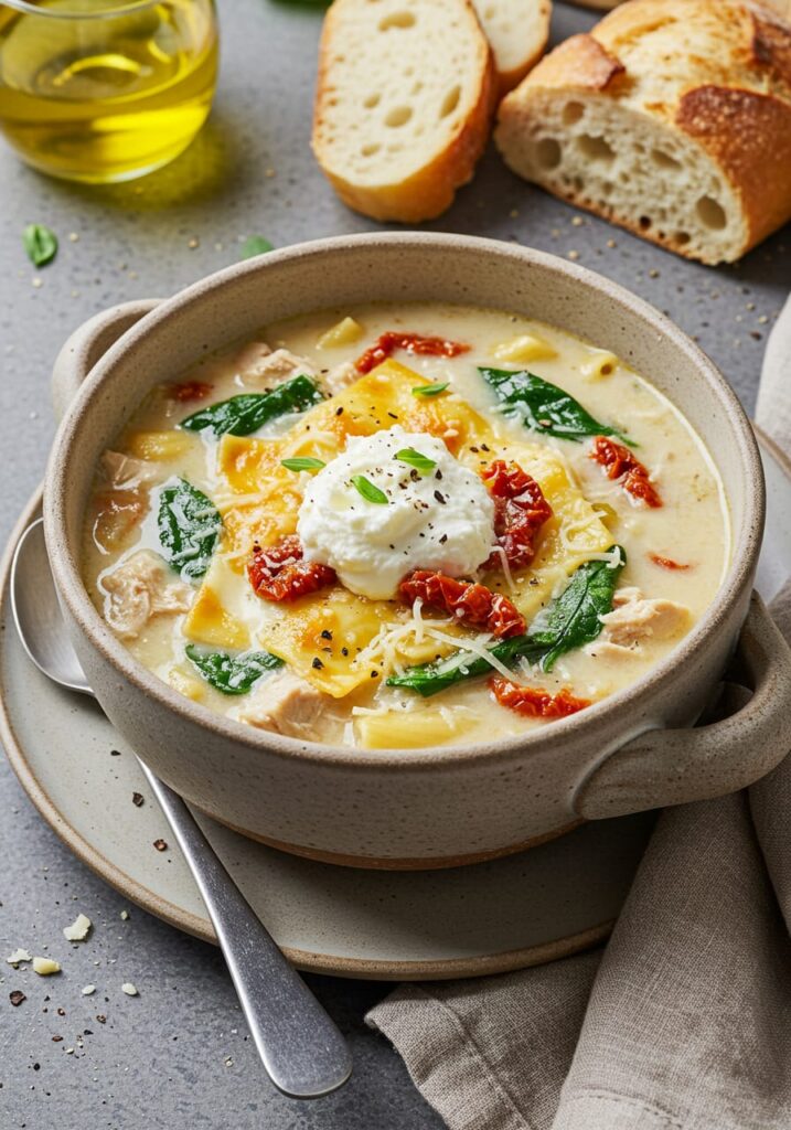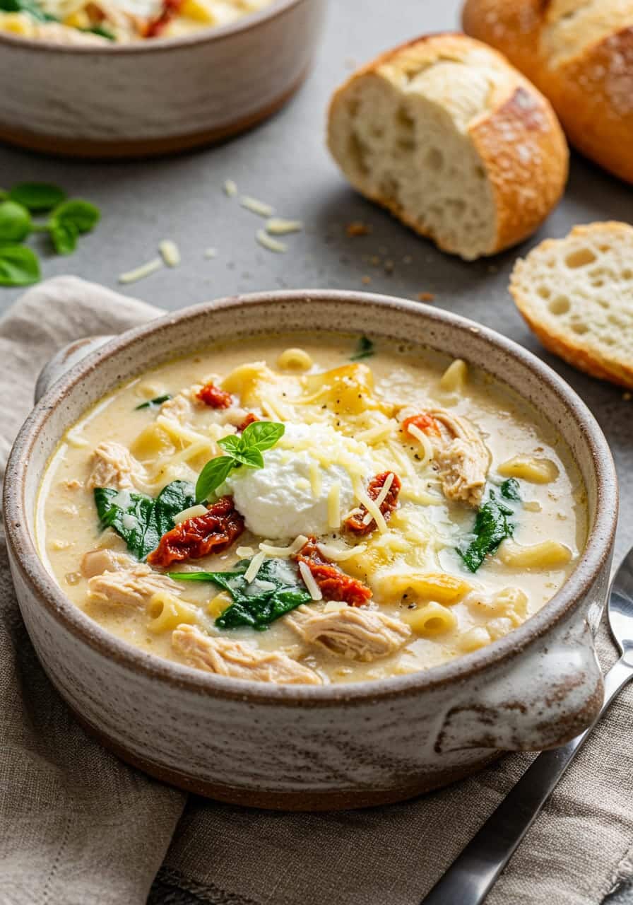 If you’ve ever sat down with a bowl of soup and felt like it hugged your soul, this recipe delivers exactly that. Rich broth, tender shredded chicken, sun-dried tomatoes, creamy textures, and the goodness of spinach and Italian spices all come together into a meal that feels both indulgent and nourishing.