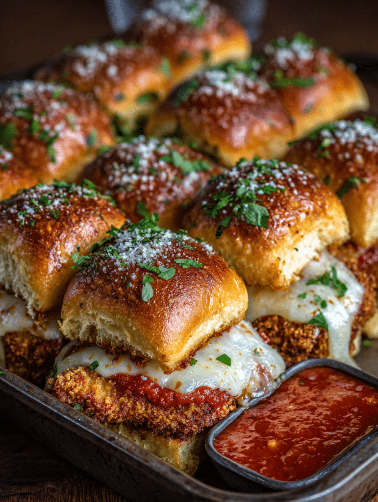 Easy, cheesy Chicken Parmesan Sliders perfect for busy weeknights. Crispy chicken, melty mozzarella, tangy marinara, and soft slider rolls combine for a family-friendly meal everyone loves.