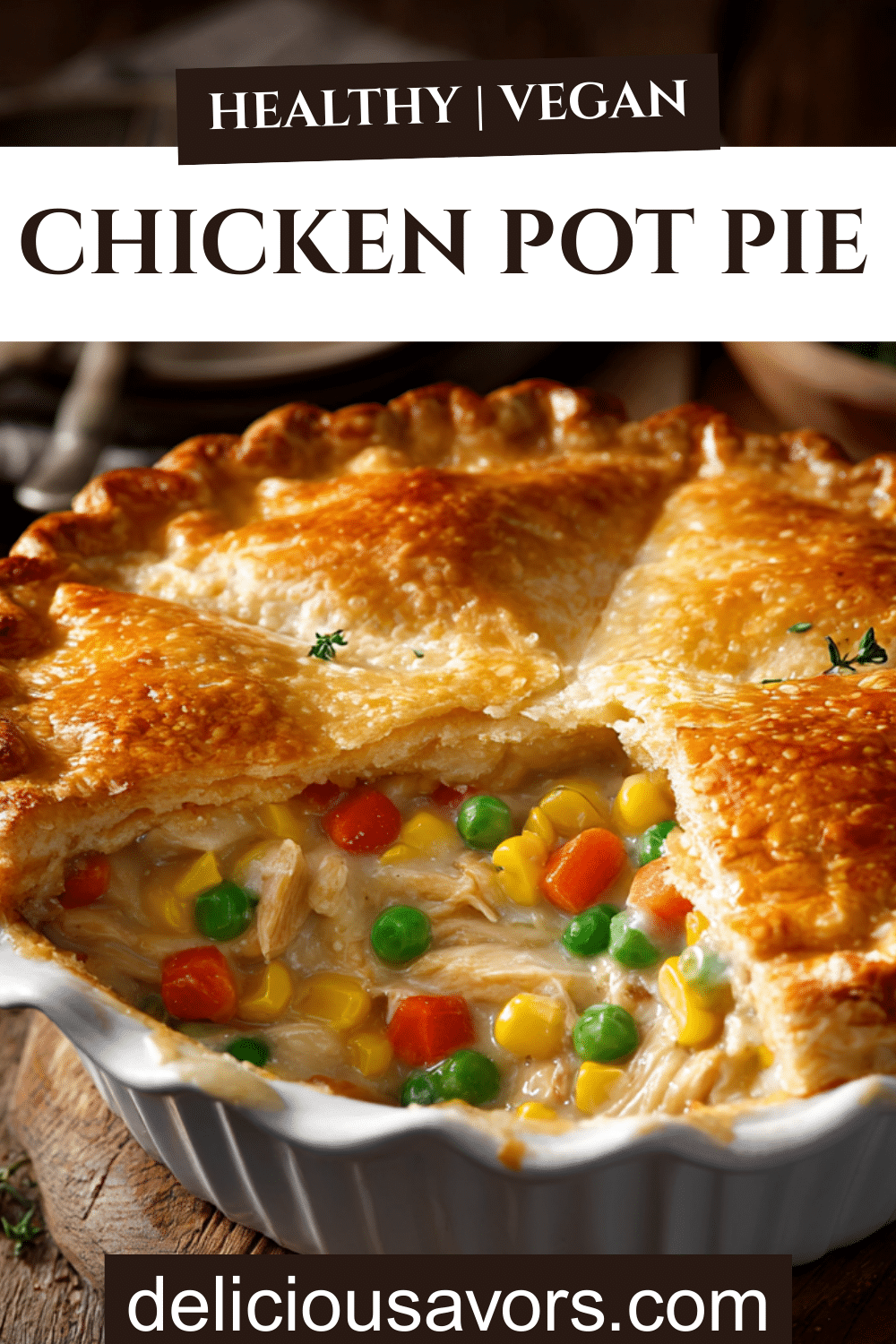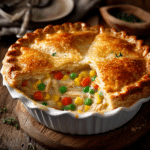 Homemade Chicken Pot Pie with tender chicken breasts, mixed vegetables, and flaky double crust. Classic American comfort food perfect for family dinners, easy weeknight meals, or cozy Sunday suppers. Creamy filling with perfectly seasoned gravy.