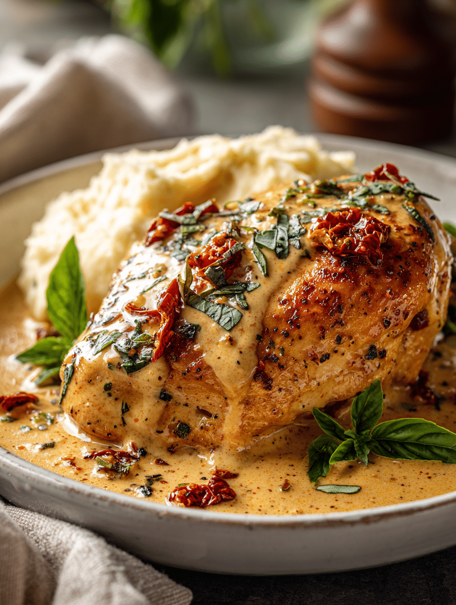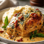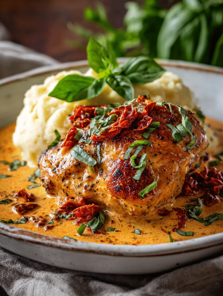 Juicy chicken with sun-dried tomatoes in a creamy parmesan sauce easy, quick, and packed with flavor. Perfect for weeknight dinners or special occasions.