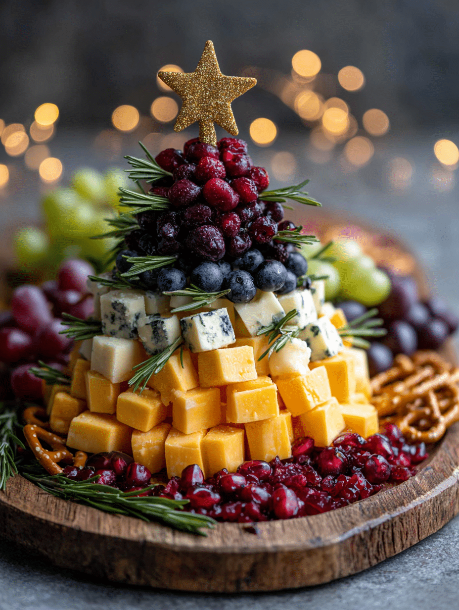 Transform your holiday table into a showstopper with this stunning Christmas Tree Cheese Board a visually impressive yet surprisingly simple appetizer that combines creamy cheddar, tangy blue cheese, and festive dried cranberries arranged in an elegant tree formation.