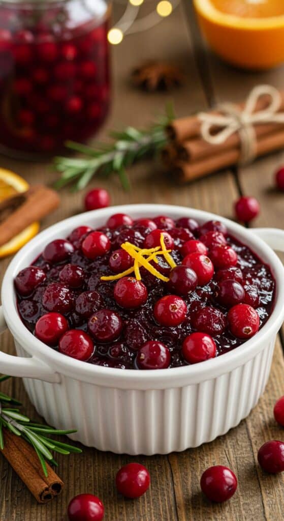 A festive homemade cranberry sauce recipe with fresh cranberries, sugar, water, and optional mix-ins like pecans, orange zest, and holiday spices.