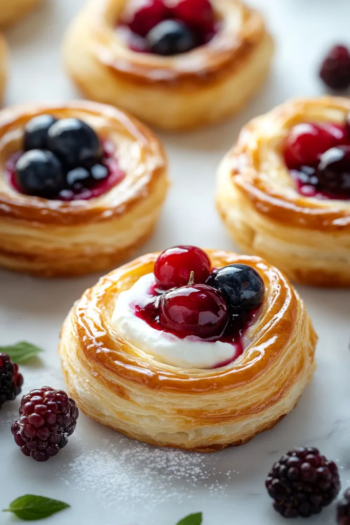 Absolutely. Use a 2-inch cutter instead of a 4-inch one to create bite-sized mini danishes. Reduce the baking time to around 12 to 14 minutes and adjust the filling amount accordingly. These are perfect for brunch buffets and party platters.