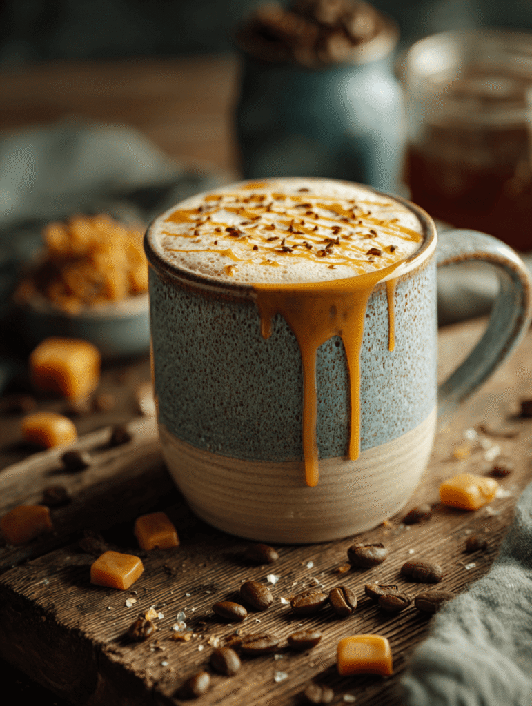 It’s a sweet, buttery flavor similar to caramel but richer and smoother perfect for cozy coffee drinks.