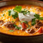 This Creamy Taco Soup combines all the bold flavors of tacos in a rich, warming soup that’s ready in just 30 minutes. Made with ground beef, cream cheese, and aromatic spices, this easy one-pot meal is perfect for busy weeknights and family dinners.