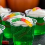Imagine the look on your guests’ faces as they reach for a seemingly innocent cup, only to discover gummy worms writhing beneath a shimmering layer of bright green gelatin. Perfect for Halloween or themed parties, these Creepy Crawly Gelatin Cups are fun, spooky, and delicious.