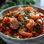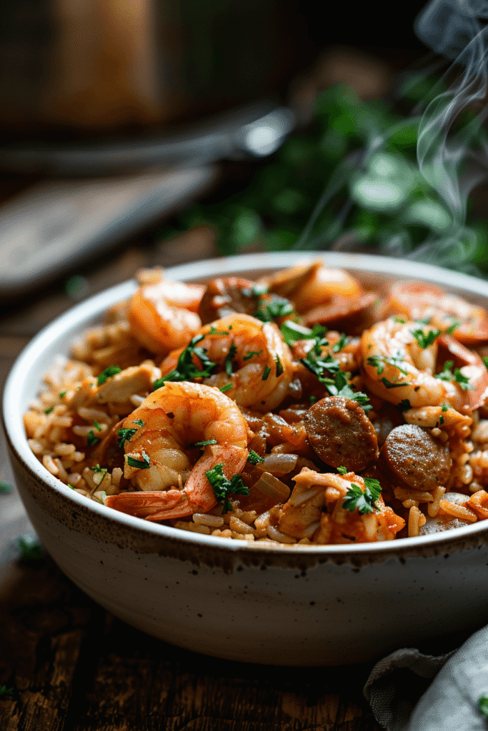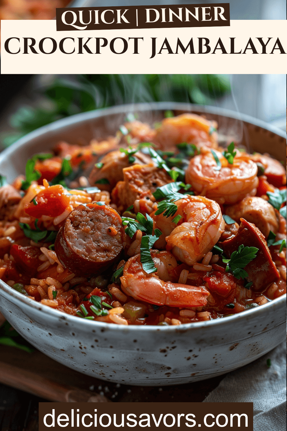 A foolproof Crockpot Jambalaya recipe featuring smoky sausage, juicy chicken, and tender shrimp simmered in bold Creole spices. This set-it-and-forget-it dinner delivers authentic Louisiana flavor with minimal hands-on time, perfect for busy families.