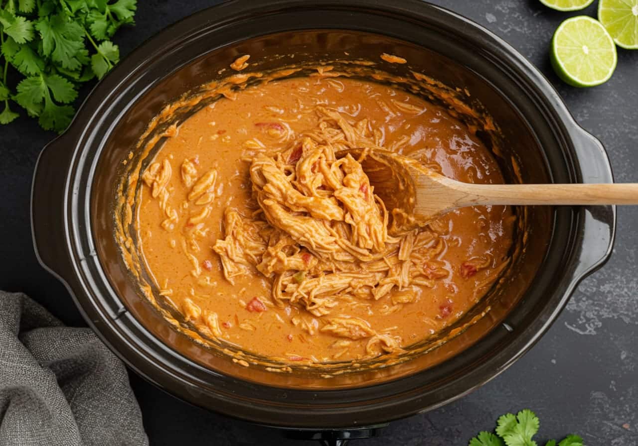 7. Stir again to combine the shredded chicken fully with the salsa and creamy sauce.
