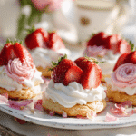 If you’ve ever dreamed of creating a dessert that looks like it belongs in a vintage Strawberry Shortcake aesthetic magazine spread, this Double Strawberry and Rose Shortcakes recipe is your answer. Combining tender lemon-buttermilk biscuits, fresh strawberry compote, rose-infused whipped cream, and delicate candied rose petals, this recipe transforms the beloved classic into an elegant showstopper perfect for bridal showers, garden parties, or any celebration worthy of beautiful Strawberry Shortcake pictures.