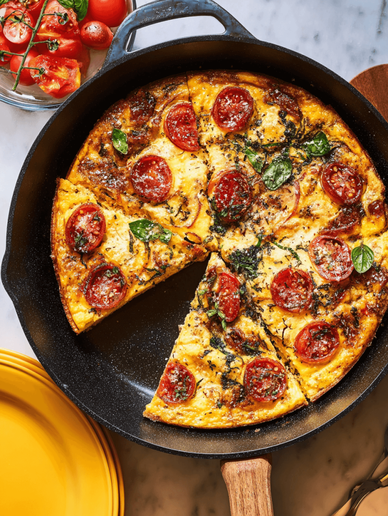 Unlike complicated bacon frittata or potato frittata recipes that require multiple steps, this pizza-inspired version comes together quickly in one oven-safe skillet.