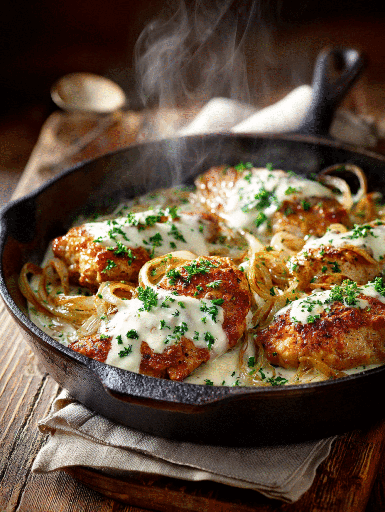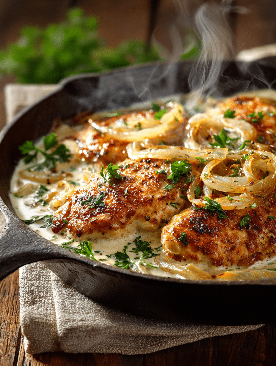 Golden pan-seared chicken breasts smothered in a rich, creamy sour cream and caramelized onion sauce. This easy one-skillet dinner is ready in just 30 minutes and delivers restaurant-quality flavor with minimal effort.