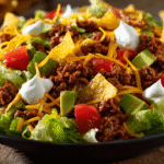 A quick and delicious taco salad loaded with seasoned ground beef, crisp lettuce, fresh tomatoes, creamy avocado, and cheddar cheese. Ready in just 20 minutes, this easy dinner recipe is perfect for busy weeknights and completely customizable with your favorite toppings.