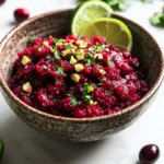 A bold, fresh, and vibrant Gingery Cranberry Salsa made with tart cranberries, jalapeño, ginger, lime, and herbs. Perfect as a holiday dip or condiment for Memorial Day, Fourth of July, and beyond.