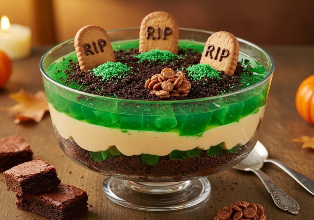 This hauntingly delicious Graveyard Brownie Trifle will be the highlight of your Halloween celebration. Each creamy, chocolatey, and playful layer lets you embrace the season and your inner chef. Serve with pride, and enjoy the shrieks of delight from every guest. Now, it’s your turn: whip up a trifle that’s frightfully yummy and full of ghostly fun!