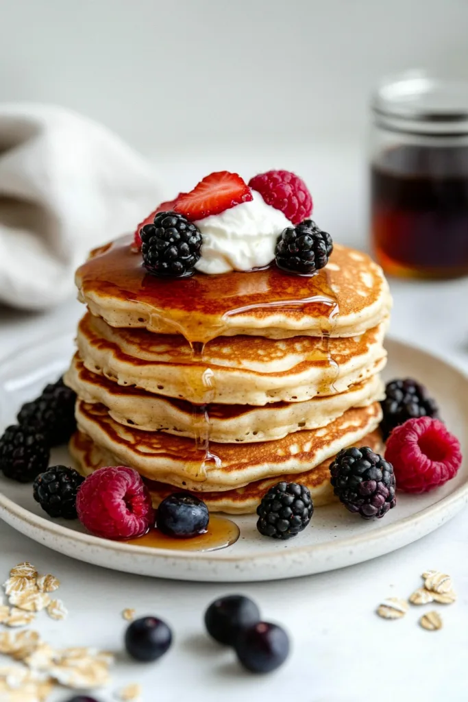 Fluffy Greek Yogurt Pancakes made with oat flour, vanilla Greek yogurt, and cinnamon. High-protein, easy, and perfect for Mother’s Day brunch or any spring brunch spread. Ready in under 30 minutes.