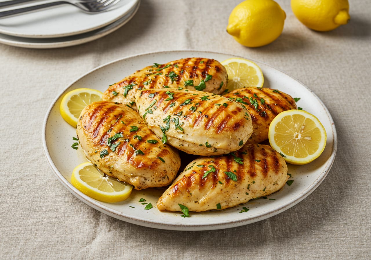 Delicious and juicy grilled lemon herb chicken breasts marinated in a flavorful blend of olive oil, lemon juice, dried basil, parsley, and spices. Perfect for a healthy and easy meal.